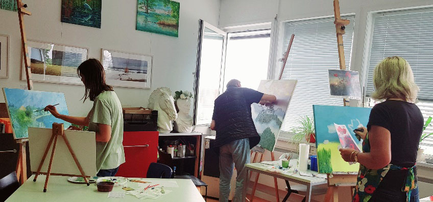Des weiteren stehen der Kunstschule zwei weitere Räume als Vorrats- und Lagerräume für Lehrmaterialien (Stoffe, Leinwände, Farben, Papiere, Ton u.v.a) zur Verfügung, so dass die Unterrichtsräume optimal genutzt werden können.